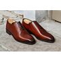 Réalisée en Cousu Blake et veau patiné sur semelle en cuir avec patin gomme intégré, avec trépointe en cuir.