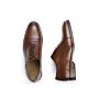 Réalisée en cousu Blake et veau patiné à la main sur semelle en cuir avec patin et avec trépointe en cuir. Œillets invisibles et lacets ronds en coton cirés ton sur ton.
