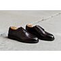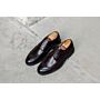Réalisée en cousu Blake et veau box français patiné sur semelle en gomme, avec trépointe en cuir. Œillets invisibles et lacets ronds en coton cirés ton sur ton.