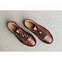 Ce sneaker est réalisé en cousu latéral et cuir de vachette patiné à la main, sur une semelle épaisse et confortable en caoutchouc. Renfort arrière en cuir ou velours. oeillets invisibles et lacets plats en coton cirés ton sur ton et première amovible en cuir de vachette.