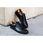 Ce sneaker est réalisé en cousu latéral et cuir de vachette patiné à la main, sur une semelle épaisse et confortable en caoutchouc. Renfort arrière en cuir ou velours. oeillets invisibles et lacets plats en coton cirés ton sur ton et première amovible en cuir de vachette.