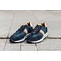 Cette chaussure est disponible en velours et mesh sur une semelle bicolore épaisse en caoutchouc. Renfort arrière en cuir de vachette patiné.