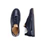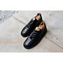 Empiècements, renfort arrière et bande de côté en cuir de mouton et velours. Languette en mesh. Œillets invisibles et lacets plats en coton cirés. Première amovible en cuir de vachette.