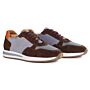 Cette basket est disponible en velours et mesh sur une semelle bicolore épaisse en caoutchouc. Renfort arrière en cuir de vachette patiné.