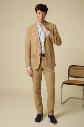 Le costume en lin est un costume estival élégant et naturellement décontracté, idéal pour une allure chic lorsque les températures montent. Soigneusement confectionné dans une serge en 100% lin européen avec une finition lavée, il offre un tombé souple et un confort optimal. Fibre respirante et thermorégulatrice par excellence, le lin apporte fraîcheur et légèreté tout au long de la journée. Une matière noble qui s’assouplit au fil des lavages et des porters, pour un costume aussi confortable que raffiné durant la saison estivale.