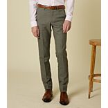 Pantalon Lazare sans pince, coupe ajustée avec fermeture éclair invisible et fermeture avec sous-pont boutonné et agrafes.