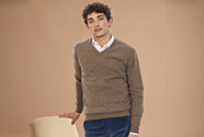 Idéal en toute saison, Elian est un pull col V homme coupe standard tricoté en laine d’agneau double fil.