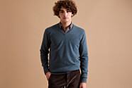 Idéal en toute saison, Elian est un pull col V homme coupe standard tricoté en laine d’agneau double fil.