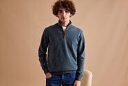 Le pull Keithy est un pull col montant zippé à l'élégance intemporelle, tricoté en 100% pure laine d'agneau double fil. Disponible dans une large gamme de coloris intemporels.